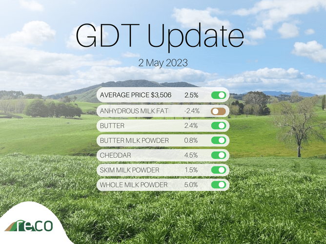Great to see another small lift at the GDT this morning. Little wins like this gives the industry confidence that we are heading in the right direction. The NZX forecast below, using the latest results, has a predicted Farmgate Milk Price of $7.75kgMS. Although there has been a few reductions to farm working expenses, the continued rise in interest rates will put pressure on farm profitability.